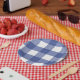 Gemalter Büffel kariert mit Streifenbeschaffenheit im Blau.