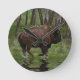 Büffel und Wald, Bison-Liebhaber Design Runde Wanduhr