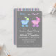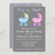 Mädchen oder Junge? Diese stilvolle Einladung eignet sich hervorragend, um Freunde und Familie zu einem Party einzuladen, in dem jeder das Geschlecht des Kindes erlernen kann. Ausgeklügelt und beschaulich präsentiert sich diese Einladung mit blauen und rosa Kinderwagen. Die rosa Buggy ist mit Lavendel lila und die blaue Buggy mit Kalkgrün betont. Vollständig anpassbar für Ihr Party. Auf der Rückseite sind blaue und rosa Streifen auf grauem (grauem) Hintergrund. Die Buggyen sind originelle Kunstwerke von Phyllis Dobbs.