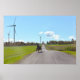 "Buggy und Windturbinen, New York" von Catherine Sherman. Ein Mann in einem Strohhalm fährt eine vom Pferd gezeichnet Buggy entlang einer Landstraße vorbei an Weiden und landwirtschaftlichen Feldern im Norden New Yorks. Windturbinen Turm Overhead.
