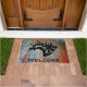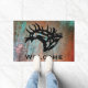 Personalisieren Sie diese einzigartige "One of a Kind" Bull Elk Door Mat! Es verfügt über eine majestätische Bugling Bull Elk Black Silhouette..auf einem türkisfarbenen und kopferfarbenen Hintergrund! Original Design von Künstler Kerry Miller.
