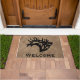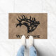 Personalisieren Sie diese einzigartige "One of a Kind" Bull Elk Door Mat! Es verfügt über eine majestätische Bugling Bull Elk Black Silhouette..auf einem braunen Lederhintergrund! Original Kunstmalerei des Künstlers Kerry Miller.