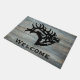 Personalisieren Sie diese einzigartige "One of a Kind" Bull Elk Door Mat! Es verfügt über eine majestätische Bugling Bull Elk Black Silhouette..auf einem grauen Holzhintergrund! Original Kunstmalerei des Künstlers Kerry Miller.