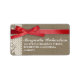 schöne Adressetiketten mit rustikalem Oberteil, weiße Spitzen mit Blumenschmuck und bedrucktem rotem Band mit Bogen. Das Beste für Hochzeiten und vor Hochzeitsfeiern!