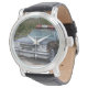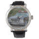 Uhr, Klassische Damenuhr mit schwarzen Lederarmband