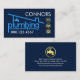 An all dark blue cover features a home "plumbing" pipeline design. Over at the top lies your prestigious name with three gold plumbing icons just underneath. Near the base of the card is your contact details.