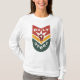 Geometric block “BUILT TO CHEER” with raised-fist icon and upward chevrons in red , green, and gold. Energetic motivational badge-style design.