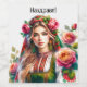Bulgarische Wasserfarben-Rose & Folk Woman Ethnic Weinetikett