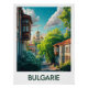 Gehen Sie mit diesem poetischen Plakat in eine friedliche Gasse Bulgariens. Zwischen traditioneller Architektur, goldenen Kuppeln und luxuriöser Vegetation ist diese Szene perfekt für eine elegante und charmante Wanddekoration.