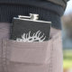 Diese einzigartige "One of a Kind" Bull Elk Flask! Es verfügt über eine silberne majestätische Bull Elk Silhouette auf einem schwarzen Lederhintergrund! Dies ist ein Original Art Design von Künstler Kerry Miller.