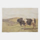 Dieses Design zeigt ein Gemälde des Schweizer Künstlers Ferdinand Hodler (1853-1918). Es ist eine beeindruckende und kraftvolle Darstellung der rohen Tierstärke und der rauen Schönheit der Natur. Im Mittelpunkt des Gemäldes steht ein massiver Stier, der mit beeindruckendem Realismus und Liebe zum Detail dargestellt wird. Der Stier steht in einer dominanten Haltung, seinem muskulösen Körper angespannt und voller potenzieller Energie, als ob er bereit wäre, seine Dominanz aufzuladen oder geltend zu machen. Sein dunkelschwarz-weißer Mantel kontrastiert stark mit den helleren grünen und blauen Tönen des Hintergrunds, was das Tier noch beeindruckender erscheinen lässt. Die Umgebung ist eine einfache Landschaft mit grünen Feldern und Hügeln. Das Originalwerk wurde 1878 von Ferdinand Hodler gemalt, und das Gemälde ist mehr als nur eine Darstellung eines Tieres; es ist ein mächtiges Symbol für Vitalität, Kraft und die unnachgiebige Kraft der Natur.