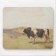 Dieses Design zeigt ein Gemälde des Schweizer Künstlers Ferdinand Hodler (1853-1918). Es ist eine beeindruckende und kraftvolle Darstellung der rohen Tierstärke und der rauen Schönheit der Natur. Im Mittelpunkt des Gemäldes steht ein massiver Stier, der mit beeindruckendem Realismus und Liebe zum Detail dargestellt wird. Der Stier steht in einer dominanten Haltung, seinem muskulösen Körper angespannt und voller potenzieller Energie, als ob er bereit wäre, seine Dominanz aufzuladen oder geltend zu machen. Sein dunkelschwarz-weißer Mantel kontrastiert stark mit den helleren grünen und blauen Tönen des Hintergrunds, was das Tier noch beeindruckender erscheinen lässt. Die Umgebung ist eine einfache Landschaft mit grünen Feldern und Hügeln. Das Originalwerk wurde 1878 von Ferdinand Hodler gemalt, und das Gemälde ist mehr als nur eine Darstellung eines Tieres; es ist ein mächtiges Symbol für Vitalität, Kraft und die unnachgiebige Kraft der Natur.