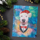 Bull Terrier Breed Hunde Weihnachten bietet eine Aquarellfarbe eines Bull Terrier mit einem roten Weihnachtshut, ein niedliches HundeblittOutfit und eine galaxische Aquarell.