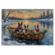 Bring unique, lovable charm to your holiday season with this distinctive Bull Terrier Christmas design! This magical scene features three sturdy, egg-headed Bull Terriers sitting attentively in a cozy wooden boat, gently floating on a serene snowy lake at sunset. The boat is beautifully adorned with glowing Christmas string lights and fragrant pine garlands, while the dogs wear festive scarves. They are surrounded by colorful wrapped presents and cheerful holly branches. Soft snowflakes gently fall, and the shimmering reflection of the lights on the water creates a truly magical winter holiday atmosphere. This design is a perfect Christmas gift for any Bull Terrier owner, dog lover, or admirer of festive and unique terrier art, capturing the serene joy of the season.