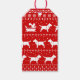 Ein skurriler Geschenktag für Bull Terrier Liebhaber! Rot-weiße Weihnachtspullover-Muster mit Bull Terrier Hunden, die ein Eichhörnchen auf dem Schlitten des Weihnachtsmanns ziehen. Die Rückseite hat Platz, um den Namen des Gebers und Empfängers hinzuzufügen. Fügt eine besondere Touch zu Ihrer Geschenkpackung hinzu.