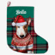 Bull Terrier Dog Rot und Grün Kariert Personalisie Großer Weihnachtsstrumpf