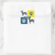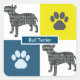 Bull Terrier Dog Silhouette & Paw Y&B Grid Quadratischer Aufkleber