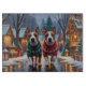 This festive design captures the joyful spirit of the holiday season, featuring an adorable dogs.Nestled in a winter wonderland, complete with a decorated Christmas tree, and beautifully wrapped presents. Snowflakes gently fall, adding a magical touch to the scene, while the vibrant colors of the holiday decorations create a warm and cheerful atmosphere.