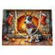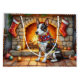 A festive Christmas scene featuring a lovable Bull Terrier sitting beside a warm, glowing fireplace adorned with stockings and wrapped in twinkling Christmas lights. This charming holiday artwork captures the Bull Terrier’s playful yet loyal nature, making it a perfect addition to any dog lover’s seasonal decor. Celebrate the warmth of the holidays and the joy of canine companionship with this cozy, heartwarming design.