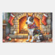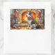 Bull Terrier Fireplace with Christmas Lights Rechteckiger Aufkleber