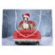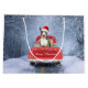 Ein Weihnachtswagen, der durch den Schnee fuhr und Weihnachtsgeschenke und Bullterhund lieferte. Eine perfekte Weihnachtsgeschenkidee für jemanden, der diesen Hund züchtet.