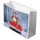 Bull Terrier Hund im Schnee sitzen in Weihnachten Große Geschenktüte
