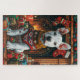 Bull Terrier mit Weihnachtsgeschenken Feuerplatz Puzzle