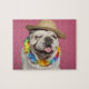 Bulldog (18 Monate alt) mit Strohhalm Puzzle