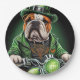Bulldog Autofahrrad St. Patrick's Day Pappteller