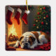Bulldog by the Fireplace Christmas Painting Keramikornament