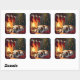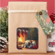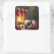 Bulldog by the Fireplace Christmas Painting Quadratischer Aufkleber