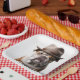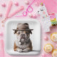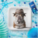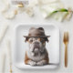 Ein Bulldog sitzt ruhig und trägt eine stilvolle Fedora, die auf weißem Hintergrund abgeschieden ist