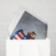Bulldog, der wie Uncle Sam mit US-Flagge gekleidet Seidenpapier