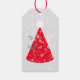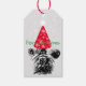 Ein niedlicher französischer Bulldogge, Weihnachtsmannmütze und Schneeflocke-Hintergrund Weihnachtsgeschenk Tag.