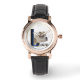 Uhr, Klassische Damenuhr mit schwarzen Lederarmband