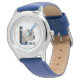 Kinderuhr aus Edelstahl mit blauem Lederarmband