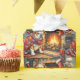 Bulldog Sitting by Fireplace with Christmas Lights Geschenkpapier