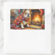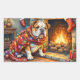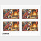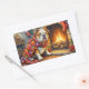 Bulldog Sitting by Fireplace with Christmas Lights Rechteckiger Aufkleber