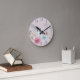 Ein niedlicher, französischer Bulldogge sitzt unter pastellfarbenen Blume auf einem klaren Hintergrund. Sie können eine beliebige Hintergrundfarbe auswählen, um Ihre Wanduhr zu personalisieren. Weiße Zahlen in schwarzer Markierung pro Stunde.