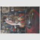 Mr. Beefy, der Bulldogge sitzt in einem klassischen Friseurstuhl, mit bunten Schrecken geschmückt. Das Ambiente des Barbershops ist mit Pflegeprodukten auf einem Holzschrank und gerahmten Bildern zum Thema gestaltet. Ein Spiegel reflektiert das Bild des Bulldoggen und fügt der Komposition Tiefe hinzu. Der Boden ist mit einem aufwändigen Design, wahrscheinlich mit einem Teppich, dekoriert, der zur eklektischen Ästhetik beiträgt. Dieses skurrile Porträt des Bulldoggen in einem menschenähnlichen Szenario erfasst die Fantasie des Betrachters mit seiner spielerischen und einzigartigen Materie. Es scheint eine kreative Idee zu sein, das typische Barbershop-Erlebnis mit einer humorvollen Drehung, die ein Haustier mit einbezieht, zu erleben.