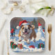 Bulldog Weihnachtsfest Schneeszene Pappteller