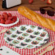 Weihnachts-Bulldoggen Welpen Papier Teller. Wählen Sie die Hintergrundfarbe aus.