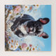 Ein glücklicher Welpe durchläuft farbenfrohe Blume und Schmetterlinge in diesem hübschen Design.