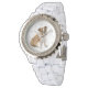 Weiße Damen Email Strassuhr