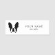 Name Tag Template ideal für Hundepflege, Hundeschlittschuh, Hundesachen, Haustierfotografen. Das moderne Design zeigt den französischen Bulldoggen Kopf und Ihren Namen.