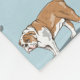 Ein niedliches Muster englischer Bullhunde. Dieser niedliche Cartoon britischer Bullhunde ist auf blauem Hintergrund mit Hundeknochen. Die Bullenhunde haben niedliche Ausdrücke auf ihren charakteristischen, zerknitterten Gesichtern. Ein Muster für jeden, der Hunde Liebe.