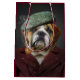 Nur ein Bullenhund, der eine Mütze trägt und eine Pfeife raucht!