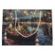 Set segelt mit dieser sehr detaillierten Abbildung in den Zauber der Urlaubssaison und zeigt einen stolzen Hund, der in einem festlich dekorierten Boot sitzt und über einen ruhigen Weihnachtssee gleitet. Die Lichter der nahen Kiefernbäume reflektieren das Wasser und warmen, festlichen Glanz, der das gemütliche Ambiente verstärkt. Die Ornamente versetzen sich von den Seiten des Bootes, während die Laternen leuchten und eine Szene schaffen, die das wahre Wesen der Weihnachtswärme und -freude einfängt. Dieses nostalgische Kunstwerk bringt eine Touch von Urlaubsmagie in jeden Raum, perfekt für diejenigen, die den Geist der Saison schätzen.