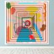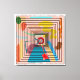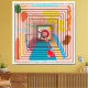 Ein lebendiges und farbenfrohes geometrisches Muster mit zentrierten zentrierten Quadraten zeichne das Auge nach innen, umgeben von verschiedenen abstrakten Formen in hellen Farbtönen. Ein gezielter Pfeil zeigt zum Brennpunkt hin, indem er ein Gefühl von Richtung und Bewegung hinzufügt.