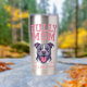Bold pit bull artwork for proud dog moms who love strong, loyal dogs. Featuring a powerful bully-breed illustration on both sides, with texture-look pink varsity-style pink lettering. This graphic is perfect for pit bull fans, and anyone who knows their pup is as fierce and fearless as momma! Show off your love for big-hearted bullies with this cute custom stainless steel cup. The tumbler is insulated to keep hot drinks hot and cold drinks cold.